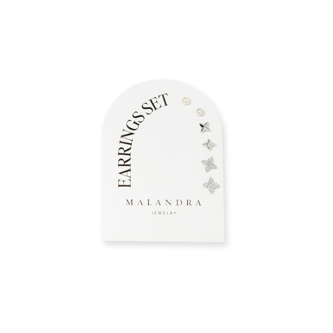 El COSMIC SILVER EARRINGS SET es un set de aretes con perla sintética y zirconia cúbica que aporta brillo celestial y elegancia delicada.