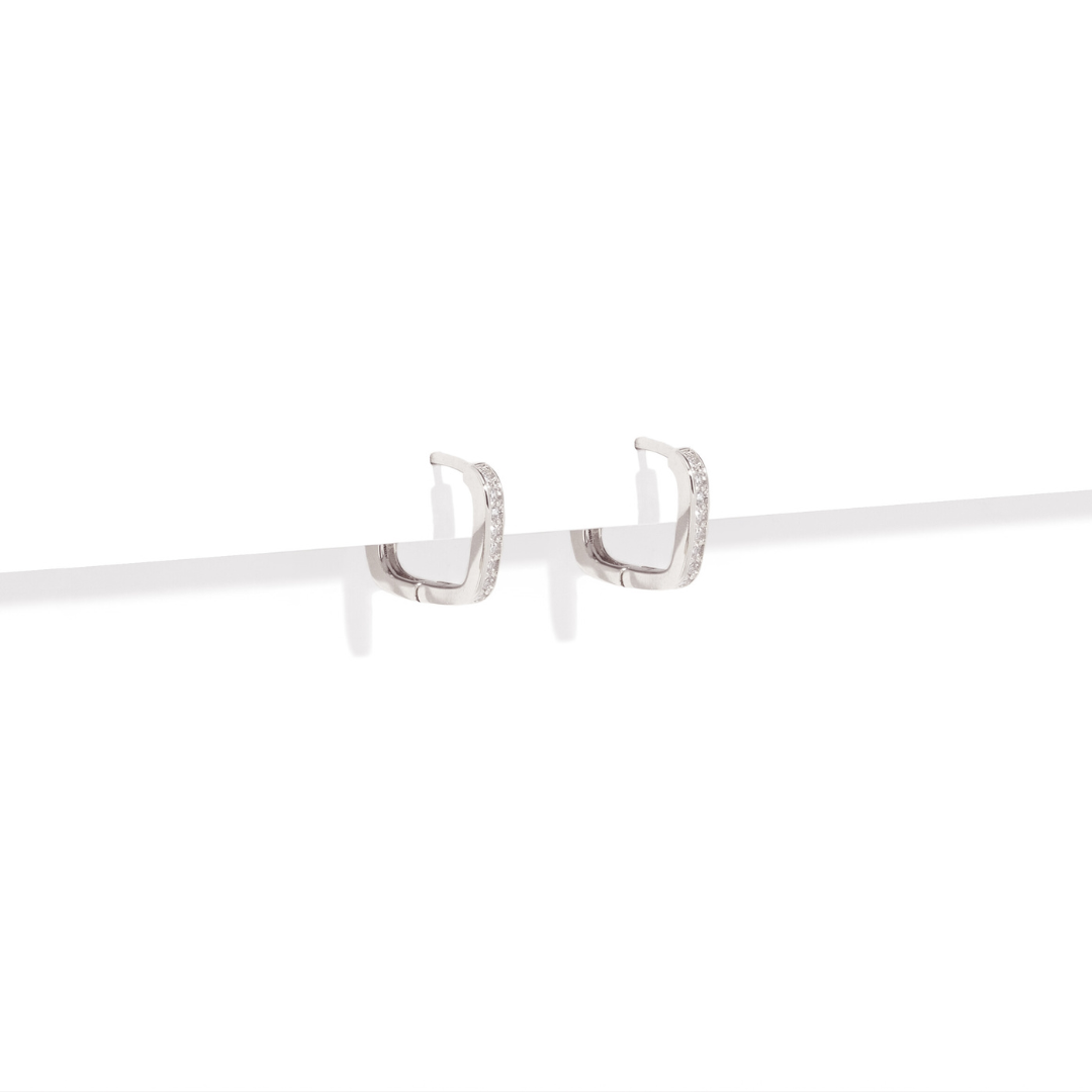 Los SILVER SQUARE GLEAM HOOPS son unas arracadas con diseño cuadrado y zirconia cúbica que aportan brillo moderno y un acabado pulido.