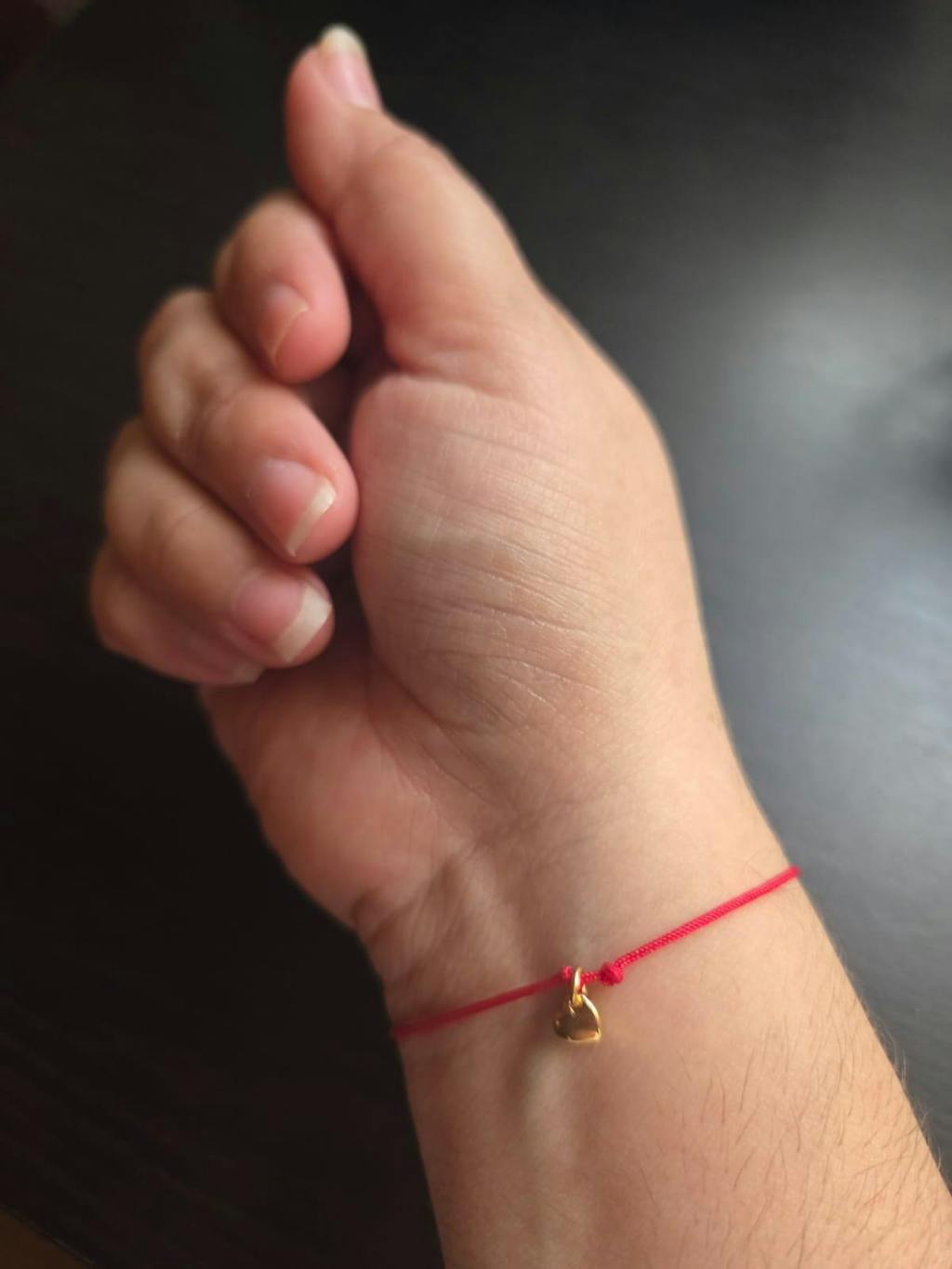 Deslumbra en tu próxima salida con esta pulsera de hilo rojo con dije de corazón. Deja que tu amor se revele con este atuendo romántico y sencillo para un look perfecto. ¡Un diseño perfecto para una noche especial!