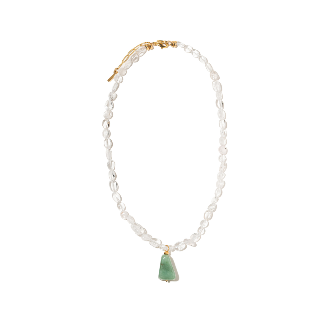 El Aventurine Quartz Terra Necklace combina el brillo orgánico de los cuarzos con el toque vibrante de una aventurina verde al centro. Una pieza única que aporta textura, color y estilo en cada look. Ideal para elevar tus combinaciones de collar con un acento fresco y diferente.