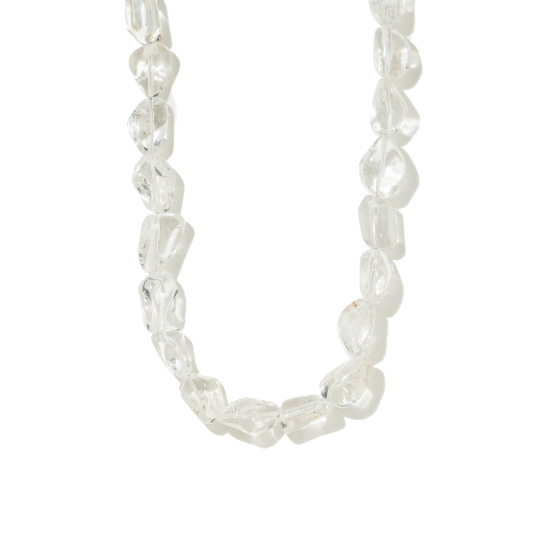 El CRYSTAL QUARTZ TERRA NECKLACE está elaborado con cuarzos en acabado natural que le dan un estilo fresco y elegante. Su diseño de piedras translúcidas lo convierte en una pieza versátil y moderna, ideal para complementar cualquier look con un toque distintivo.