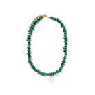 El GREEN MALACHITE TERRA NECKLACE combina cuentas de malaquita en un tono verde profundo con un dije central de cuarzo que aporta un contraste sofisticado. Un diseño moderno y versátil que eleva cualquier look con un estilo único.