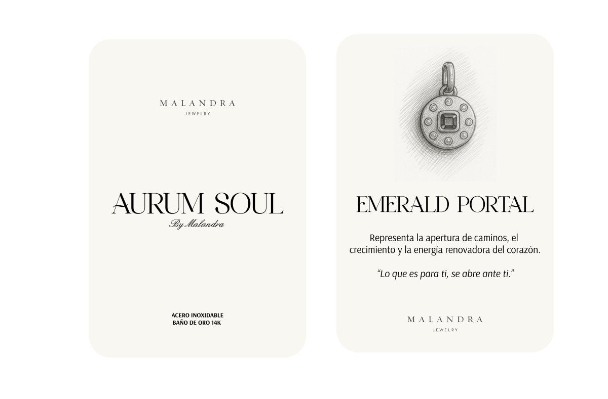 El Emerald Portal Charm destaca por su diseño circular en acabado dorado pulido, decorado con pequeñas zirconias que rodean un centro protagonista: una piedra verde corte cuadrado que aporta un contraste vibrante y elegante. Una pieza llamativa y sofisticada, perfecta para agregar un toque de color a tus cadenas favoritas.