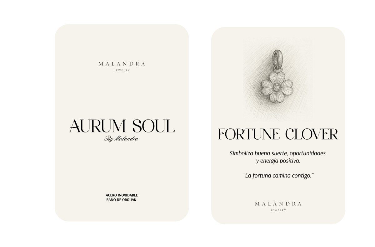 El Fortune Clover es un charm dorado con forma de trébol de cuatro pétalos, diseñado con líneas grabadas que aportan textura y un acabado elegante. En el centro, una zirconia brillante añade un toque de luz que realza su silueta delicada. Perfecto para añadir un detalle llamativo y femenino a cualquier cadena.