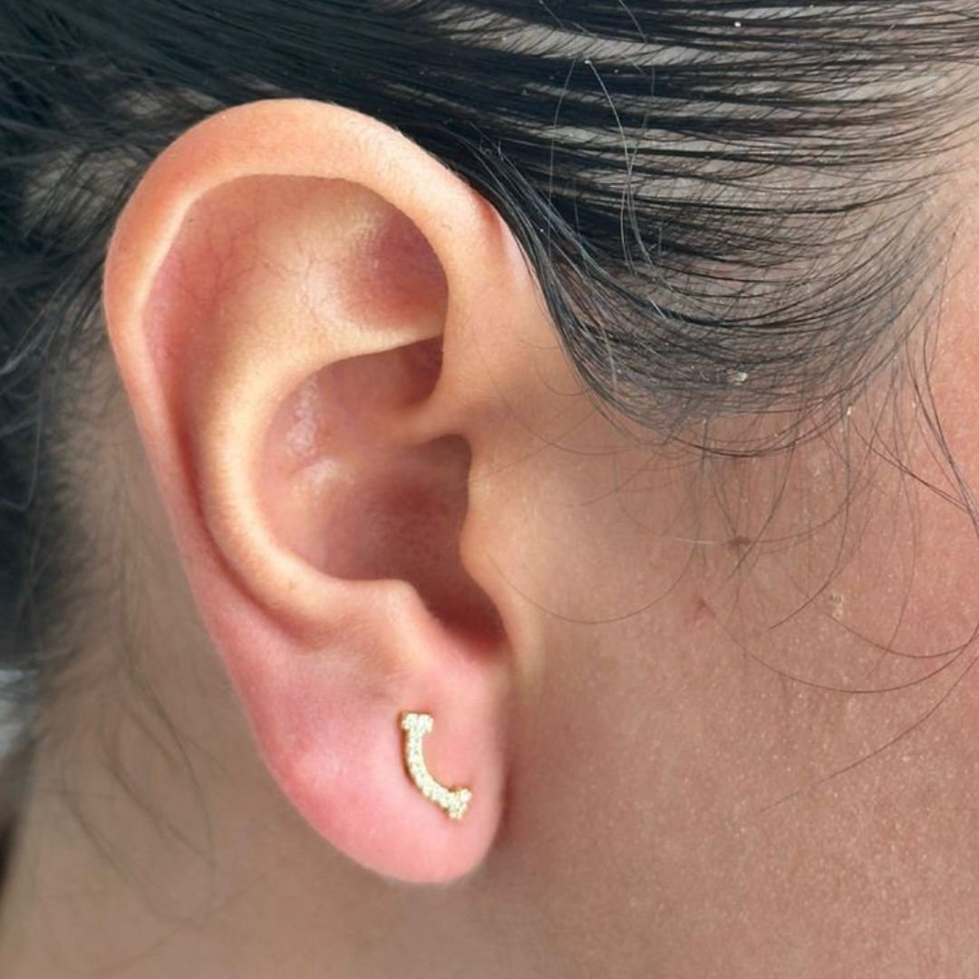 Los GOLDEN ARC MAXI EARRINGS son el detalle brillante que no puede faltar en tu colección. Su diseño en forma de arco con zirconias en color dorado aporta un toque moderno y delicado que ilumina cualquier look. Disponibles en tamaño chico, mediano y grande, para que elijas el que mejor se adapta a tu estilo o combines varios para crear un ear stack con mucho brillo.