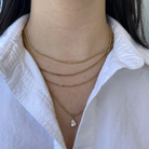 El LAYERED QUAD LUXE NECKLACE es un collar de cuatro capas con zirconia cúbica que aporta dimensión y brillo sofisticado en un solo diseño.