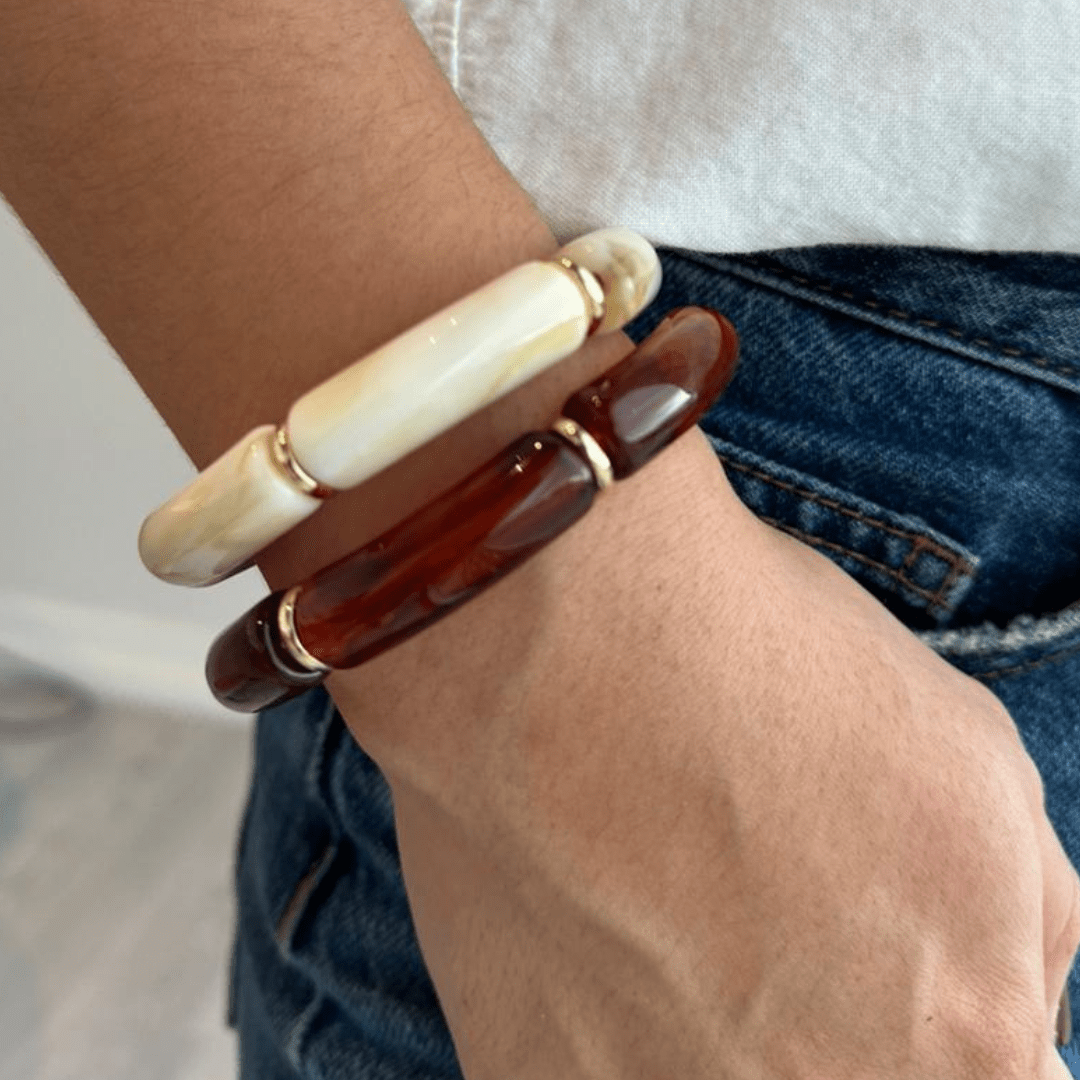 La Ivory Swirl Luxe Bracelet destaca por su acabado perlado y su textura swirl suave que aporta un toque elegante y fresco. Su diseño rígido y luminoso la convierte en una pieza versátil que complementa desde outfits casuales hasta looks más sofisticados.