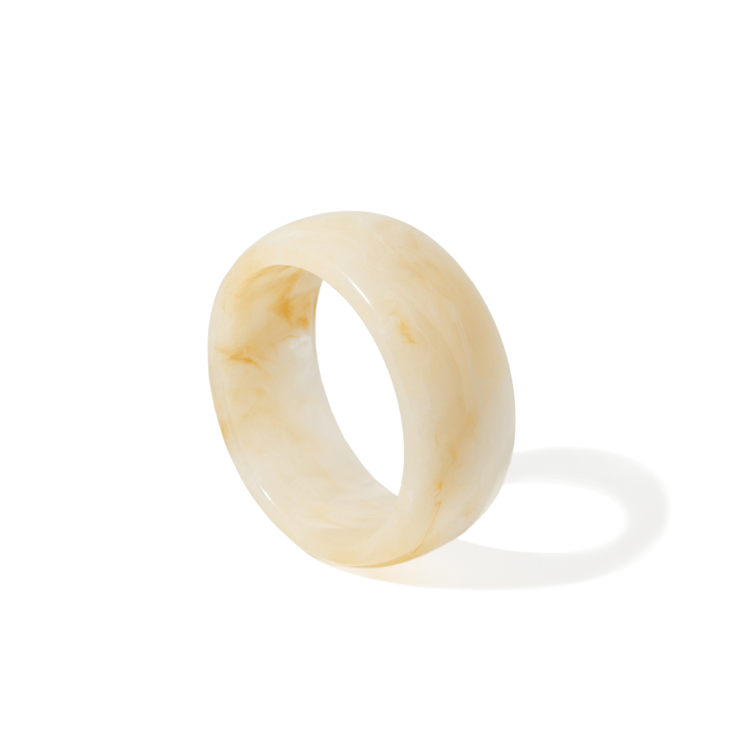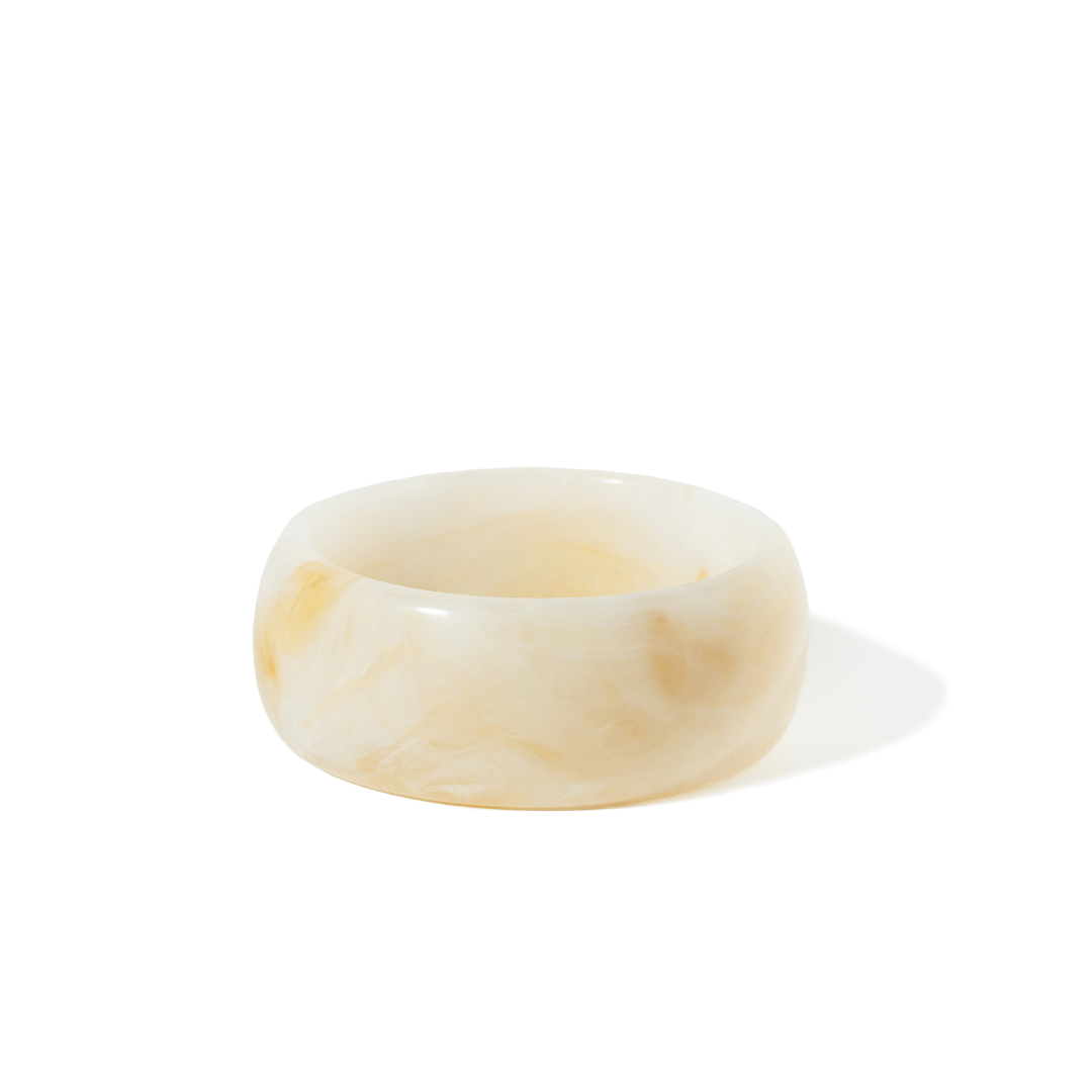 La Moon Swirl Bracelet destaca por sus tonos ivory con vetas marmoleadas que le dan una apariencia luminosa y sofisticada. Su diseño ancho y ligero la convierte en el accesorio perfecto para darle un toque moderno y clean a tu outfit. Ideal para llevar sola o combinar en layers.
