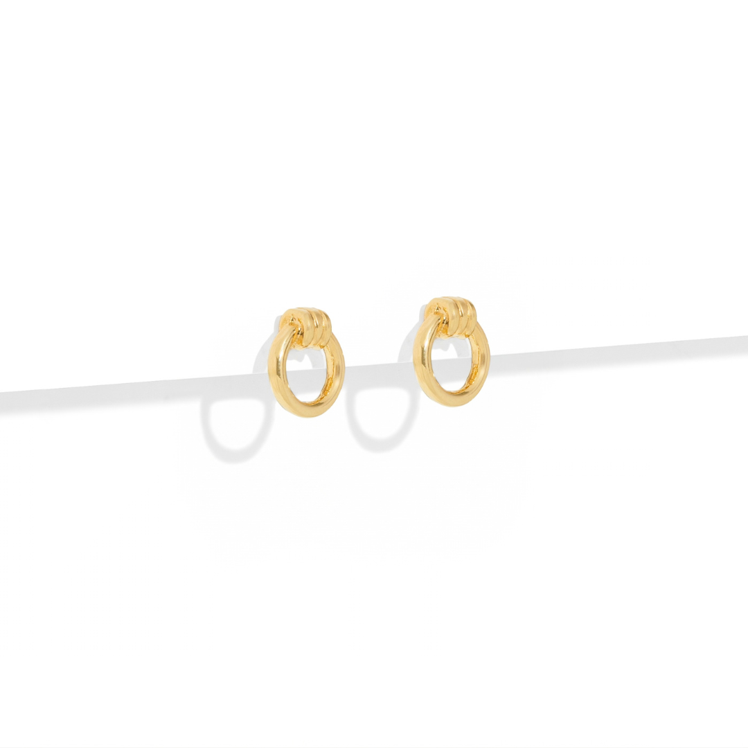 Los GOLD KNOT ORBIT STUDS son unos aretes tipo studs con diseño de nudo circular que aportan elegancia atemporal y un toque moderno.