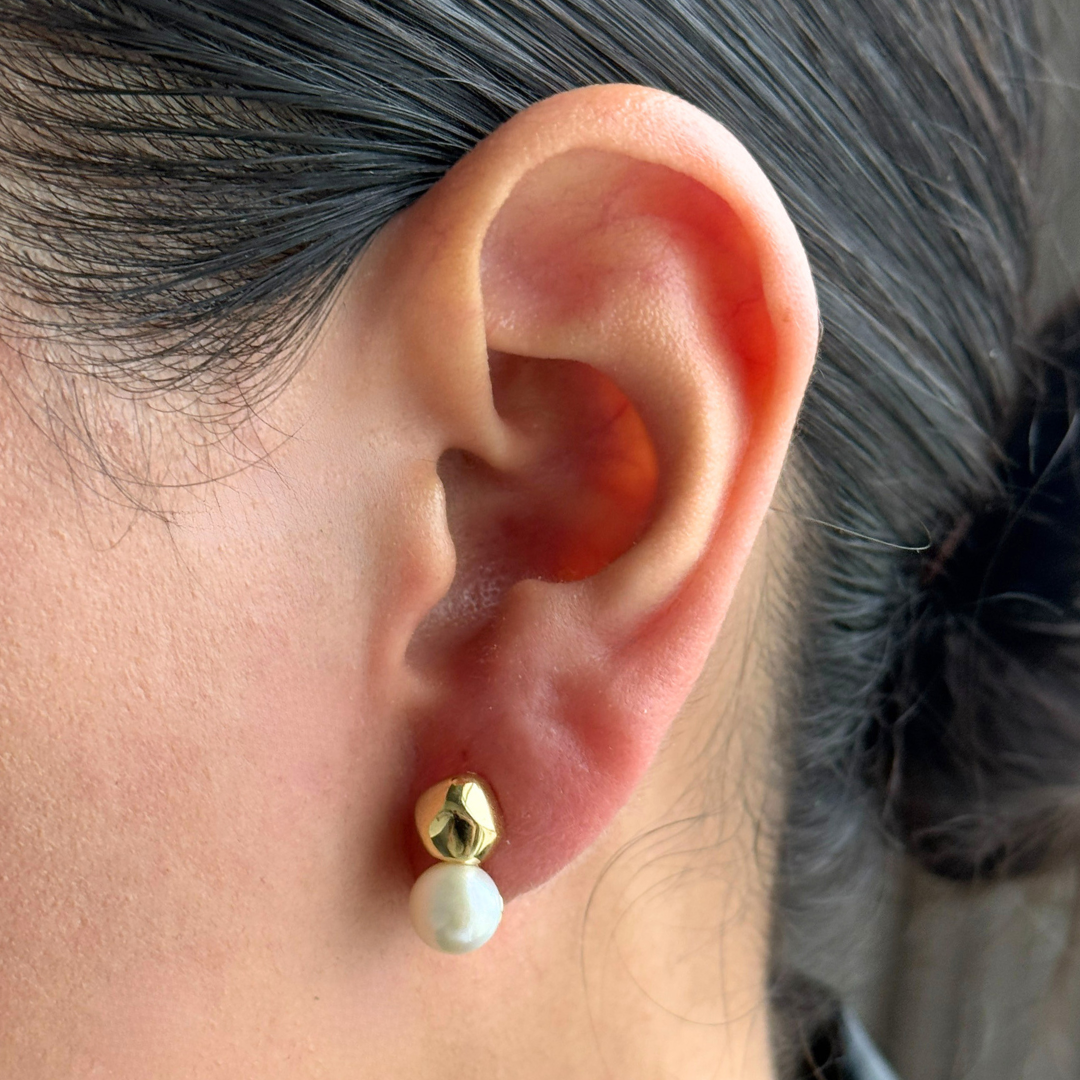 Material: Chapa de oro 14k con perla natural de agua dulce y poste de plata .925
