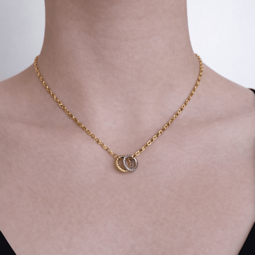Diseñado para usarse solo o como pieza protagonista, el Halo Ring Charms Necklace aporta un toque luminoso y sofisticado que eleva cualquier look, ideal para el uso diario o para ocasiones especiales.