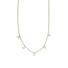 El Multi Gleam Tennis Necklace es un collar de diseño moderno que combina múltiples destellos de zirconia cúbica en un acabado dorado elegante y sofisticado.