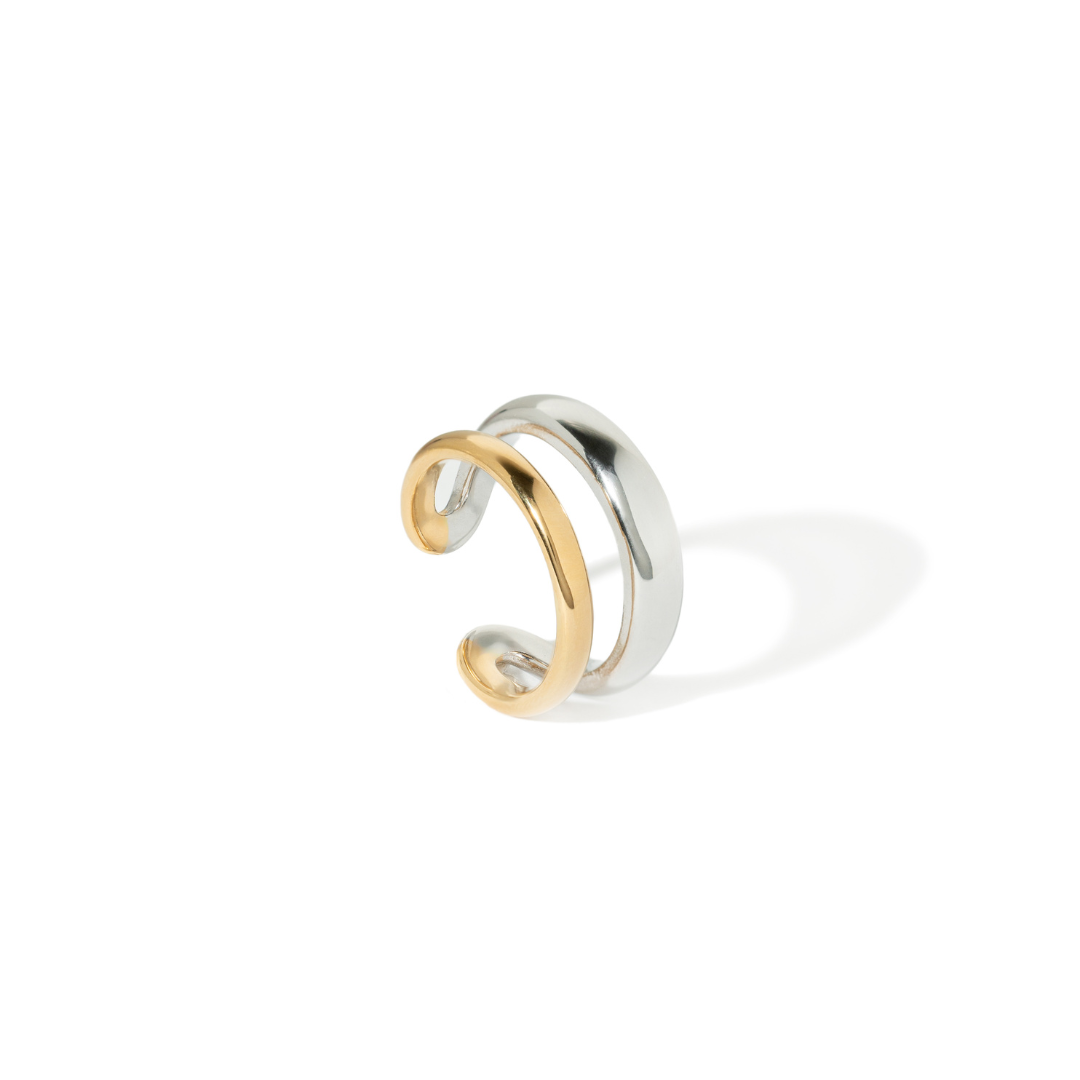 Una fusión perfecta entre dos mundos. El Silver & Gold Blend Ring combina la elegancia del dorado con la modernidad del plateado en un diseño abierto y sofisticado. Su contraste crea una pieza versátil que equilibra fuerza y sutileza, ideal para elevar cualquier look con un toque contemporáneo y distintivo.