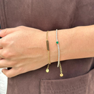 El Gold & Gem Bracelet Gift Set combina dos pulseras que equilibran a la perfección lo clásico y lo moderno. Una pieza dorada de diseño elegante y otra con delicadas cuentas y un toque de color protagonizado por una piedra verde vibrante.