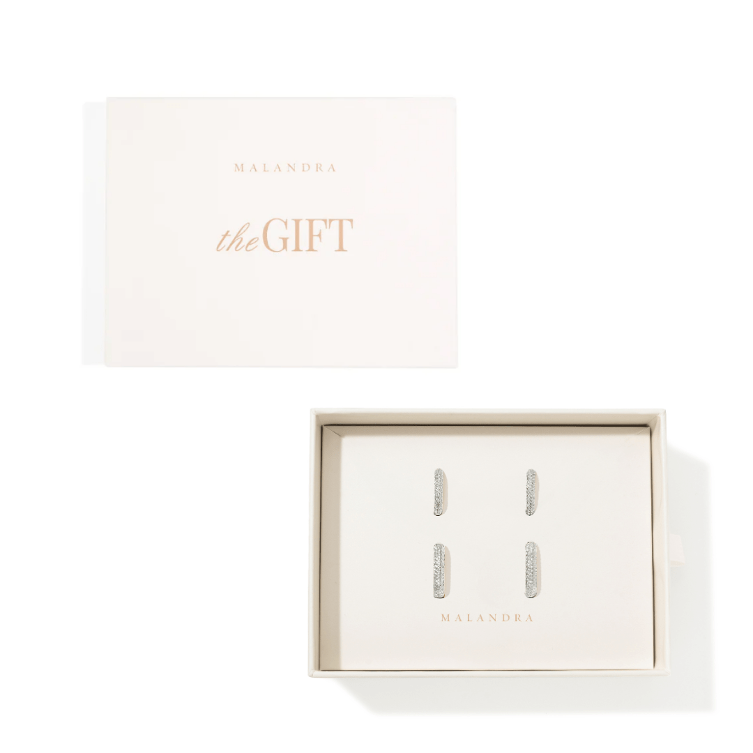 SILVER LINKS PAVÉ GIFT SET reúne dos piezas icónicas de la colección LINKS con un acabado pavé que aporta brillo y sofisticación. Compuesto por un collar de eslabones plateados y aretes a juego, este set destaca por su diseño contemporáneo y su luminosidad sutil, ideal para elevar cualquier look.
