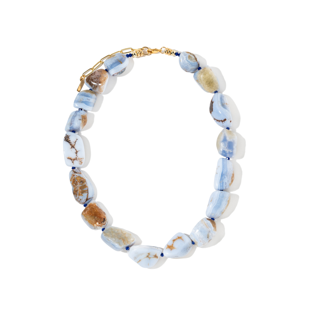 El Earth Mist Terra Necklace destaca por su mezcla de colores suaves y lleno de estilo. Cada piedra tiene una forma y tono único, creando una pieza con carácter, perfecta para darle un twist original a tus looks.