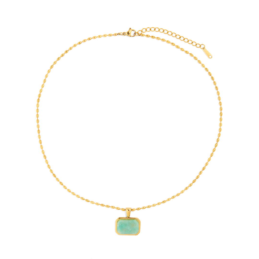 Este collar GOLDEN AQUA STONE NECKLACE destaca por su elegante diseño y un colgante cuadrado en un vibrante tono aqua, que aporta un toque fresco y juvenil a cualquier atuendo. Perfecto para quienes buscan un accesorio sofisticado con un toque divertido y moderno.