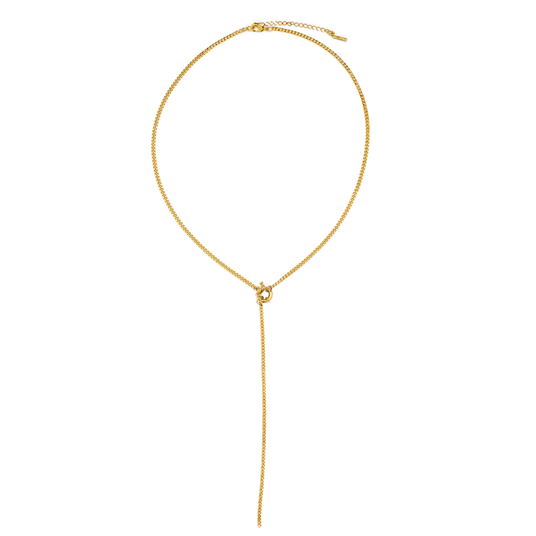 El Golden Link Lariat Necklace es un collar tipo corbatín que redefine la elegancia con un toque contemporáneo. Su diseño aporta movimiento y sofisticación a cualquier outfit. Es la pieza perfecta para elevar desde un look casual hasta un conjunto de noche.
