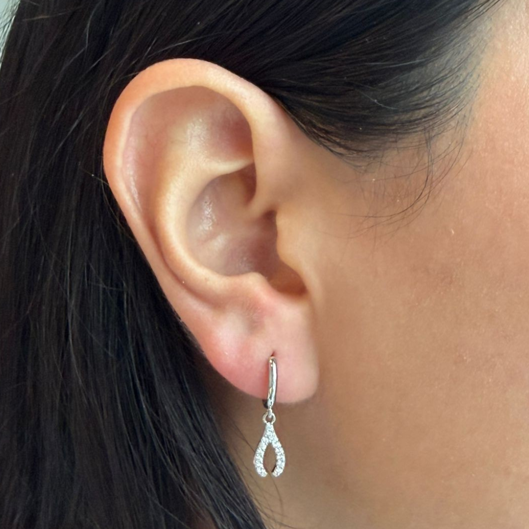 Los aretes Shimmering Bone Silver Huggies combinan un diseño único con un toque de sofisticación. El charm en forma de hueso, adornado con zirconias brillantes, le da un toque sutil de luz, creando un contraste elegante y moderno. Perfectos para agregar un detalle especial a tu look diario o para una ocasión especial, estos aretes aportan un estilo llamativo pero delicado.