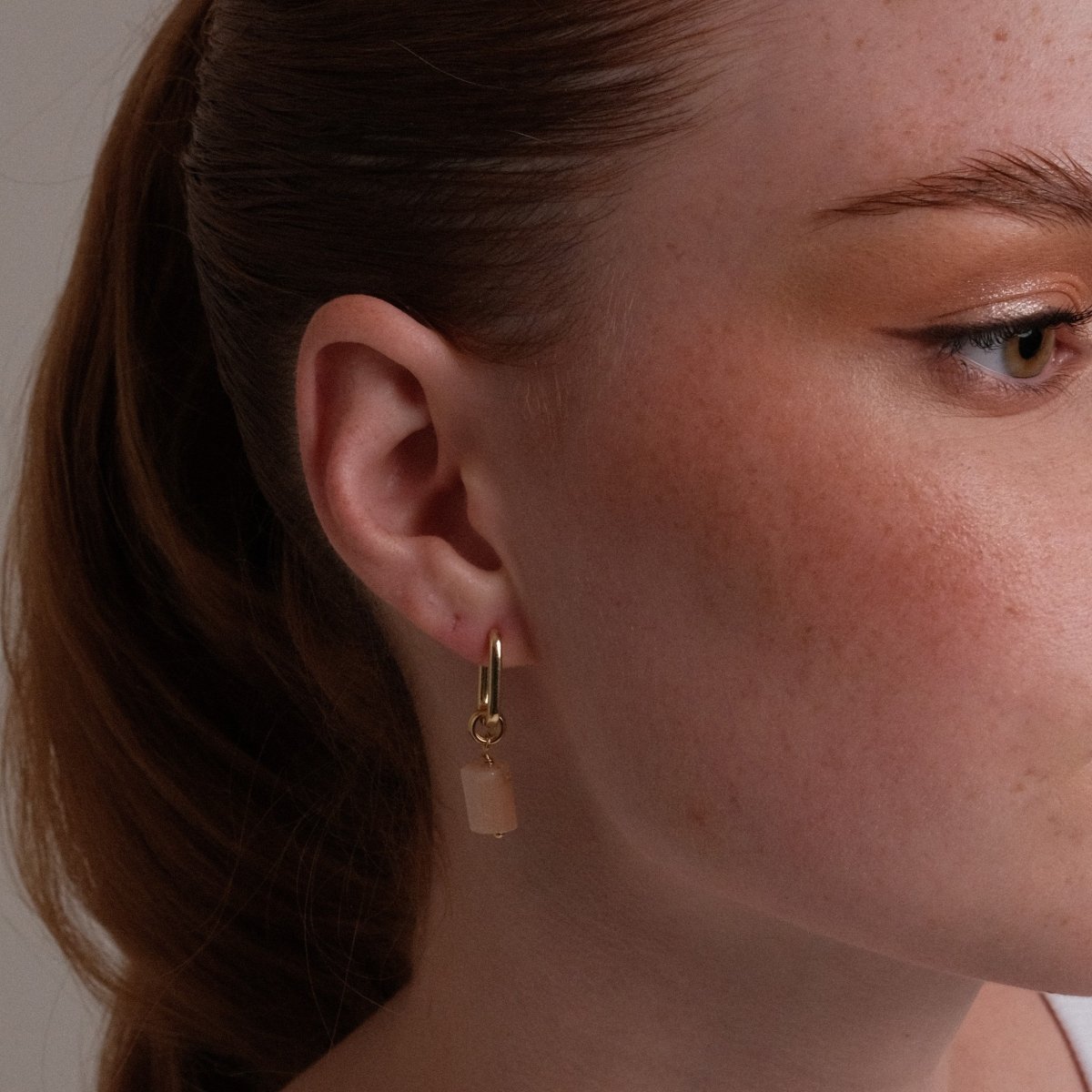 Measure: 3.2 cm total length. Huggie: 1.5 cm long and 1 cm wide. Sunstone: 1.1 cm long and 6 mm thick.