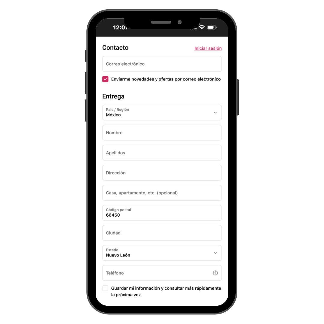 Ingresa tu información de contacto y domicilio de entrega de tu paquete y elige tu envío.