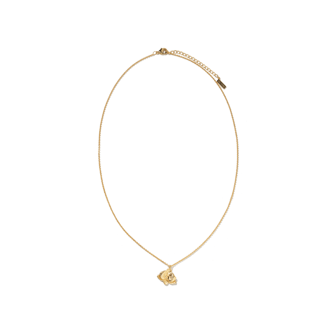 Este collar ORCHID FLOWER CHUNKY NECKLACE es ese toque especial que eleva cualquier outfit. Inspirado en la elegancia natural de la orquídea, su dije dorado captura la delicadeza y belleza de esta flor icónica. La cadena dorada complementa perfectamente el diseño, aportando un brillo sutil.